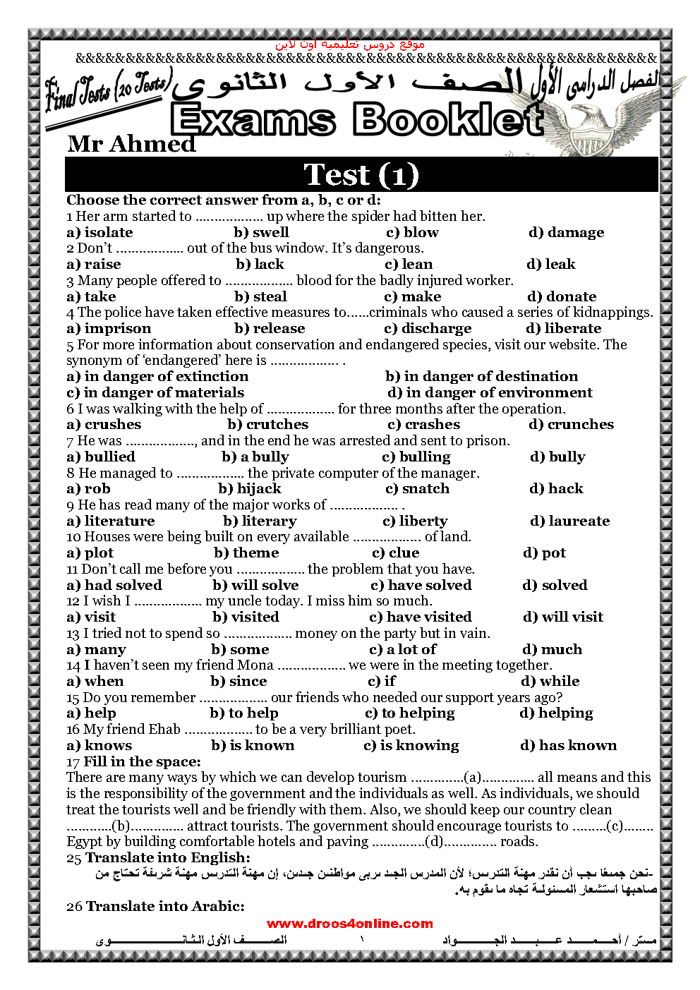 - الامتحانات من نشر موقع دروس تعليمية اون لاين